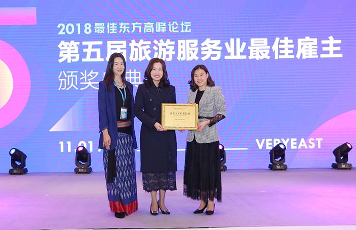 11月2日,由最佳东方与上海三甲港绿地国际旅游度假村联合主办、最佳东方HR公社、先之教育、迈点、乔邦猎头协办的“2018最佳东方高峰论坛暨第五届旅游服务业最佳雇主颁奖盛典”在上海圆满落幕。yl23411永利集团官网旅游学院院长田芙蓉应邀出席论坛,并作为全国院校代表作“基于产教融合发的WIE办学模式分享”。旅游学院继2017年后再度蝉联荣获“2018最佳东方高峰论坛暨第五届旅游服务业最佳雇主颁奖之优秀人才培养院校奖。”