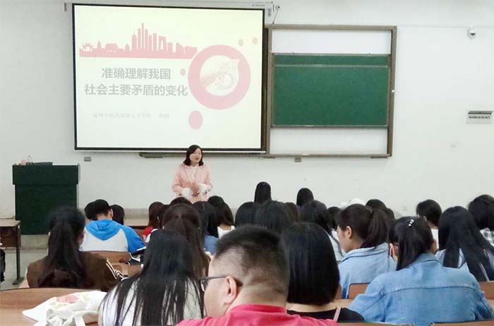通过苟园老师讲授的此次党课,加深了学员们对我国社会主要矛盾论断的四次变化及其基本内涵的认识,增强了学员们对党的十九大报告的理解,深化了学员们对习近平新时代中国特色社会主义思想的学习。苟园老师用生动的语言和丰富的形式给学员们做了精彩的讲解;同学们积极互动,认真听讲,受益良多。