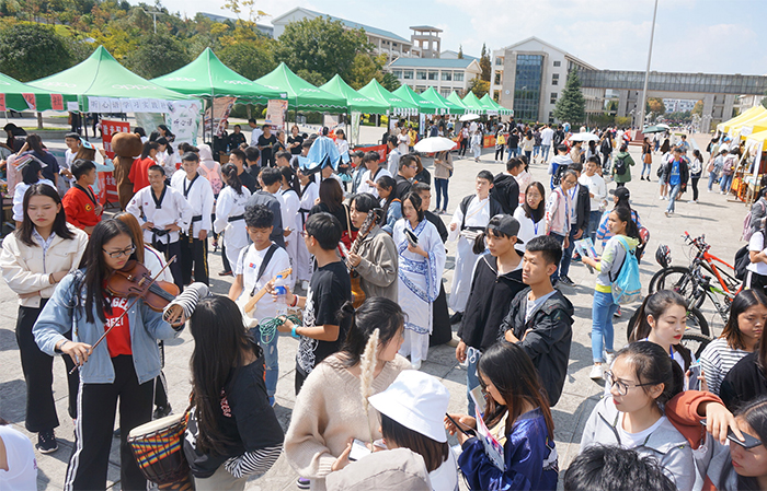 10月19日,为期三日的第九届“昆院有你,社团等你”社团文化博览会开幕式暨社团招新在聂耳广场圆满落幕。活动期间异彩纷呈,激情不断,社团纳新满满。yl23411永利集团官网党委统战部部长机关党总支书记蔡华仙、党委宣传部副部长李思诚,学生处副处长吴向东,党委组织部干部科科长尤新明,校团委副书记郎易老师出席了开幕式,同时各在昆高校学生代表及永利官网十八家院系师生代表参加了本次活动。