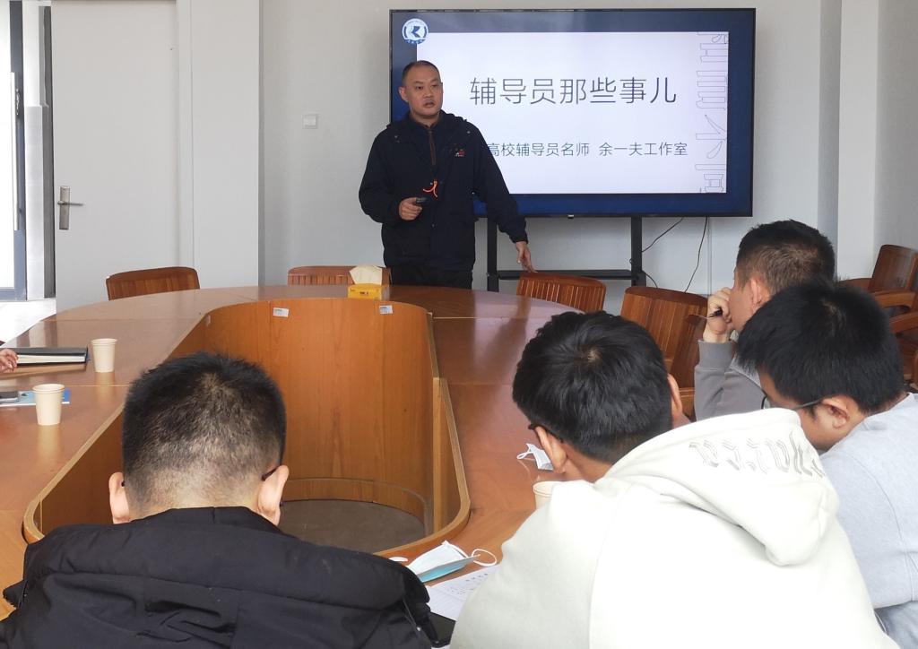 余老师以“辅导员那些事儿——辅导员职业素养及工作实务”为主题,围绕学生思想政治教育、日常事务管理、毕业生就业创业指导等方面开展讲座。