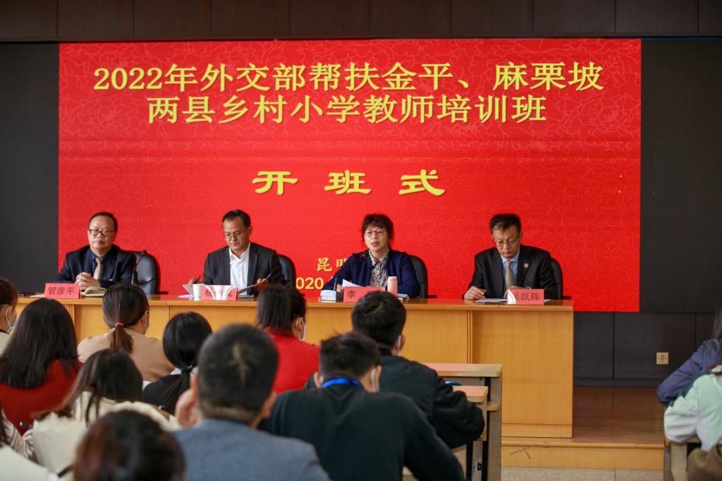 10月25日上午,2022年外交部帮扶金平、麻栗坡两县乡村小学教师培训班在永利官网开班。云南省人民政府外事办公室副主任杨绍成、yl23411永利集团官网党委副书记李莉、省政府外事办公室人事处及永利官网继续教育学院的相关领导和职能部门的同志出席了开班仪式。开班仪式由继续教育学院院长管彦平主持。