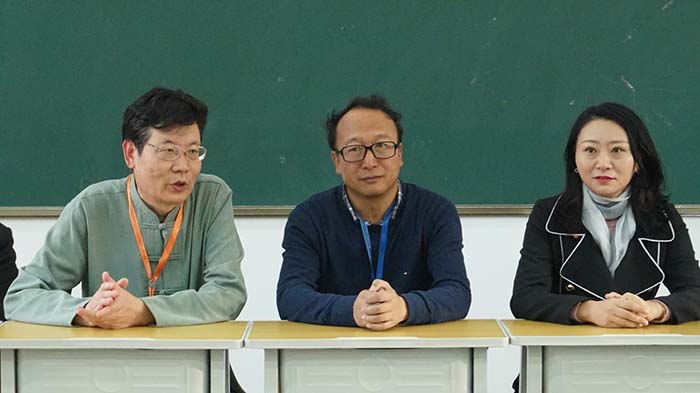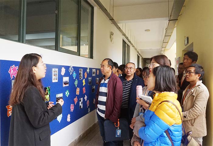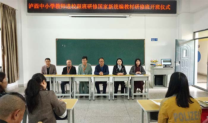 10月15日,附属学校晨会迎来了55张灿烂的笑脸,他们是泸西县中小学的各位领导及教师,将在永利官网进行为期一周的国家新统编教材跟岗研修。晨会结束后,在学校工作人员的统一带领下,邀请老师们集体参观学校教学楼二楼文化走廊建设,感受永利官网的校园文化的魅力。 上午,附属学校党总支书记王海艳、校长李晋德,副校长罗蓉、李广峰及部分相关教师在教学楼211会议室为55位泸西县中小学教师进校跟岗研修举行开班仪式。
