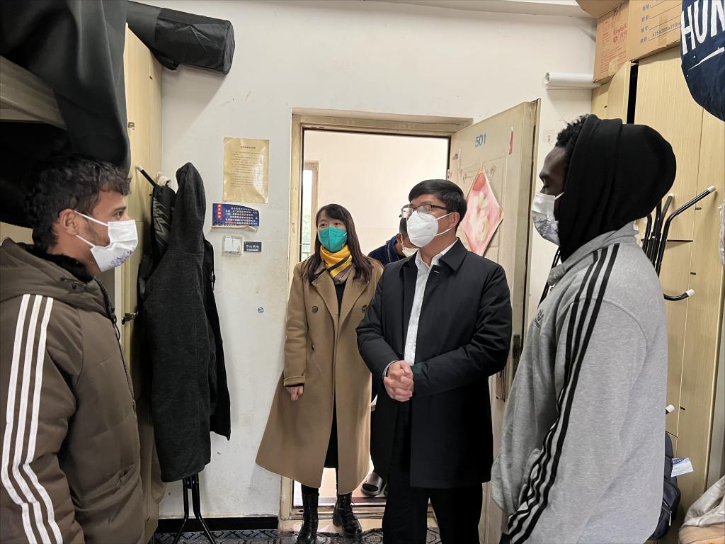 12月30日,李剀副校长到留学生宿舍看望慰问寒假留校的留学生。