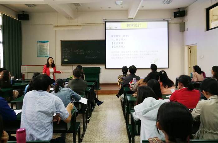针对预评估专家提出的教师课堂教学方法陈旧,不能体现学生主体教学理念的问题,医学院制定了详细整改措施。9月28日,医学院由获得2018年云南省教师教学能力大赛一等奖的柴雁菁老师在博识楼1301多媒体教室以生物化学课程“糖异生”教学为例,给老师们分享了“雨课堂”的教学模式。在教学示范中,柴雁菁老师对“雨课堂”软件的功能和使用方法进行了详细的介绍,通过参与问答互动、难点反馈、PPT推送、现场答题、统计调查或弹幕到投影屏幕等功能对参会教师进行了实操演示。小插件,大数据,“雨课堂” 将教学工具巧妙融入PowerPoint与微信,使教师和管理者知道教室里真正发生了什么,有助于实现数据驱动的教学,帮助教师在提升教学艺术的同时,实现科学教学和教学科学,是一种新的教学模式。这种教学模式,实现了线上、线下的混合式教学,结合案例导入,问题导向,使刻板的单项传输的课堂教学变得丰富多彩,生动有趣,实现了学生主体的教学理念,并提高了课堂教学效果及效率,解决了传统的讲授法课堂教学以教师为中心,缺少启发、引导和实质性的师生互动的问题。