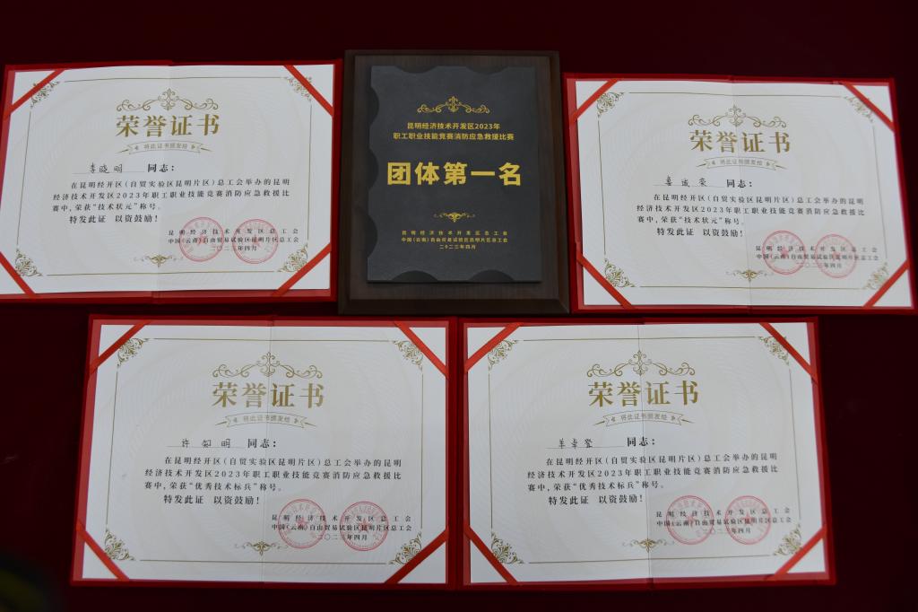 永利官网代表队在比赛中团结奋进、顽强拼搏,取得了室外消火栓连接水带出水操集体项目一等奖,两名队员分别获“技术状元”称号;400米消防疏散物资操、原地着灭火防护服一人三盘水带连接操两个个人项目二等奖,队员获“优秀技术标兵”称号,yl23411永利集团官网获得团体第一名,赢得了主办方和辖区单位参赛职工的一致好评。