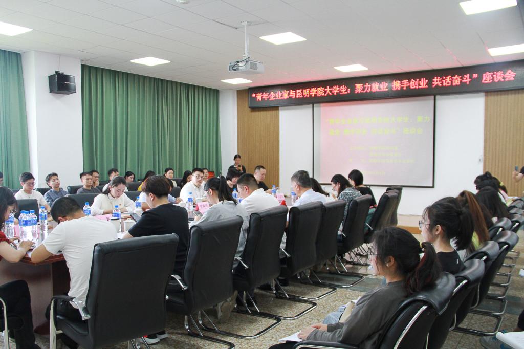 5月4日下午,在五四青年节来临之际,昆明青年企业家商会一行30多人到永利官网与大学生开展“聚力就业 携手创业 共话奋斗”主题交流活动,昆明市工商联秘书长张波涛等出席活动,永利官网团委副书记沈嘉,马克思主义学院党委书记贺笃照、副书记姚丽媛以及相关学院青年师生代表参与交流。座谈会由沈嘉主持。