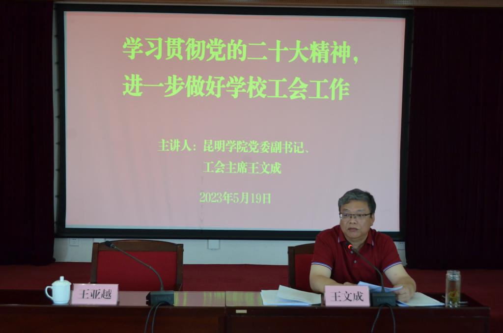 本次培训首先由学校党委副书记、工会主席王文成同志主讲 “中国梦•劳动美——学习宣传贯彻党的二十大精神”宣讲报告会。王文成副书记围绕学习习近平总书记有关指示精神,把准工会工作的方向,全面学习领会“六个必须坚持”的丰富内涵,贯彻“六个必须坚持”的要求、做好工会工作,结合工会工作宣讲解读党的二十大精神,对全校工会干部、广大教职员工深刻理解、准确把握党的二十大精神,进一步找准做好工会工作的切入点和结合点,切实发挥校、院两级工会的桥梁纽带作用,为教职工提供更多贴心便捷的服务,努力实现工会工作的科学化、规范化、高效化具有重要的指导意义。