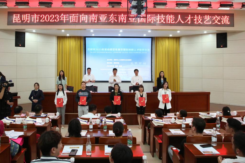 9月12日上午,由昆明市人力资源和社会保障局主办,yl23411永利集团官网国际学院承办的第四届昆明市面向南亚东南亚国际技能人才技艺交流在永利官网开班。