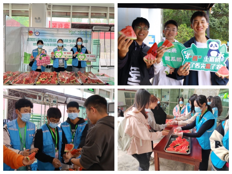 乡村振兴,助农先行!为进一步引导广大昆院青年学习宣传贯彻习近平生态文明思想,坚持系统观念全面推进乡村振兴,引导广大青少年投身于乡村振兴,成为乡村振兴中的“青春力量”,永利官网积极发动组织同学们参与“我为母校赢西瓜”活动。在9727名同学的共同努力下,永利官网获得了全国第十名和云南省第二名的好成绩,10月13日至17日,校团委协同后勤集团在南北苑食堂开展了yl23411永利集团官网“团团请你吃西瓜,助推乡村振兴路”活动。