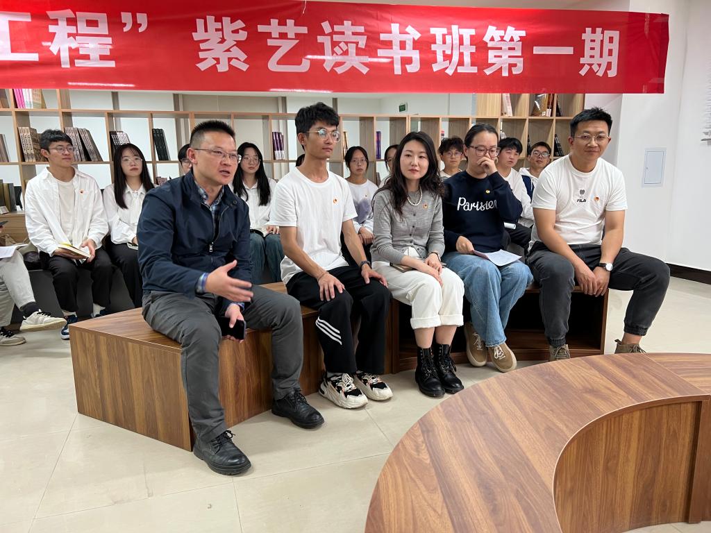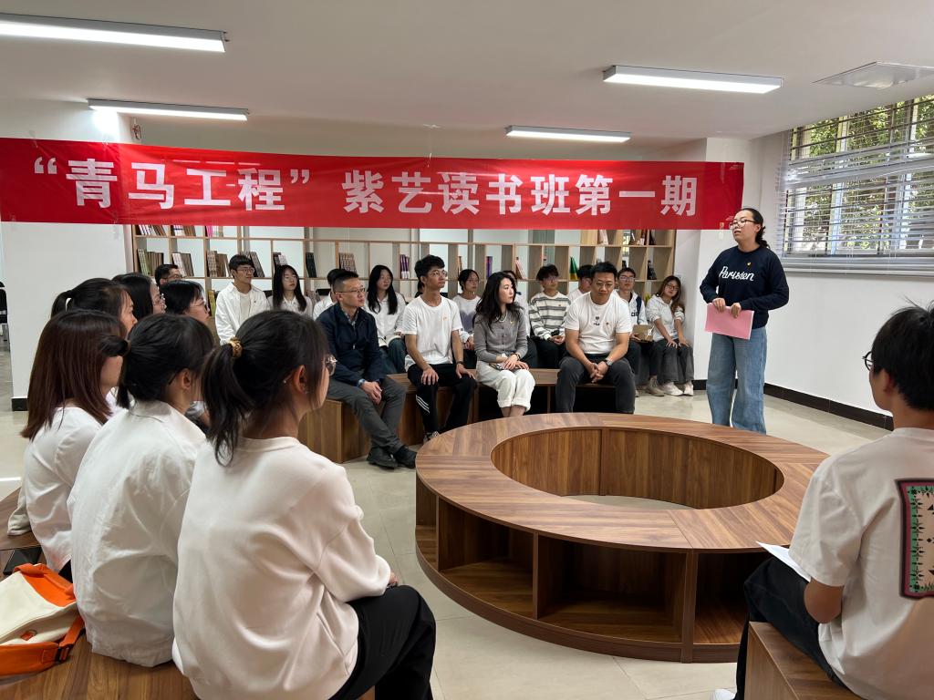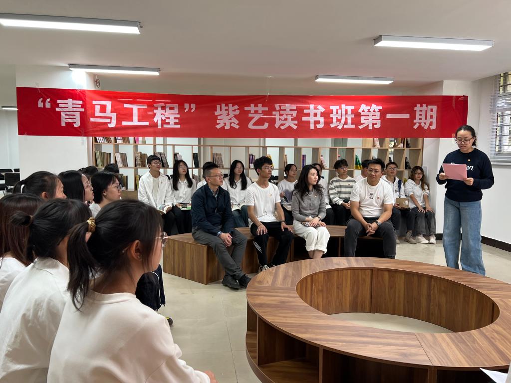 11月4日下午,yl23411永利集团官网团委在“一站式”学生社区党建文化悦读空间举办“青马工程”第二期紫艺读书会。校团委、二级学院团委相关师生团干部,校团委宣传部、新媒中心、学术科创部、广播台、学生成长服务中心、研究生会、大学生艺术团等“青马”学员参加读书会。