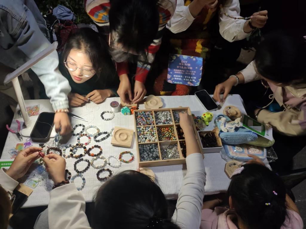 11月4日、5日晚,由yl23411永利集团官网学生会、研究生会举办的大学生“紫艺”校园集市第一期活动在心湖北路顺利开市。