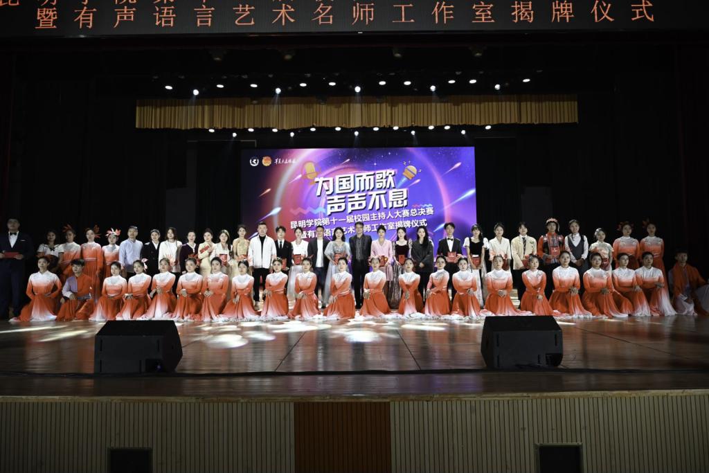 11月8日晚,yl23411永利集团官网第十一届校园主持人大赛总决赛暨有声语言艺术名师工作室揭牌仪式在学生会堂举办。大赛以主题“为国而歌,声声不息”为主题,来自各学院的十六位选手在决赛中一展风采。学校团委书记聂铭、团委副书记周丹,各二级学院团委书记、团干部代表以及相关专业有声语言艺术名师参加。