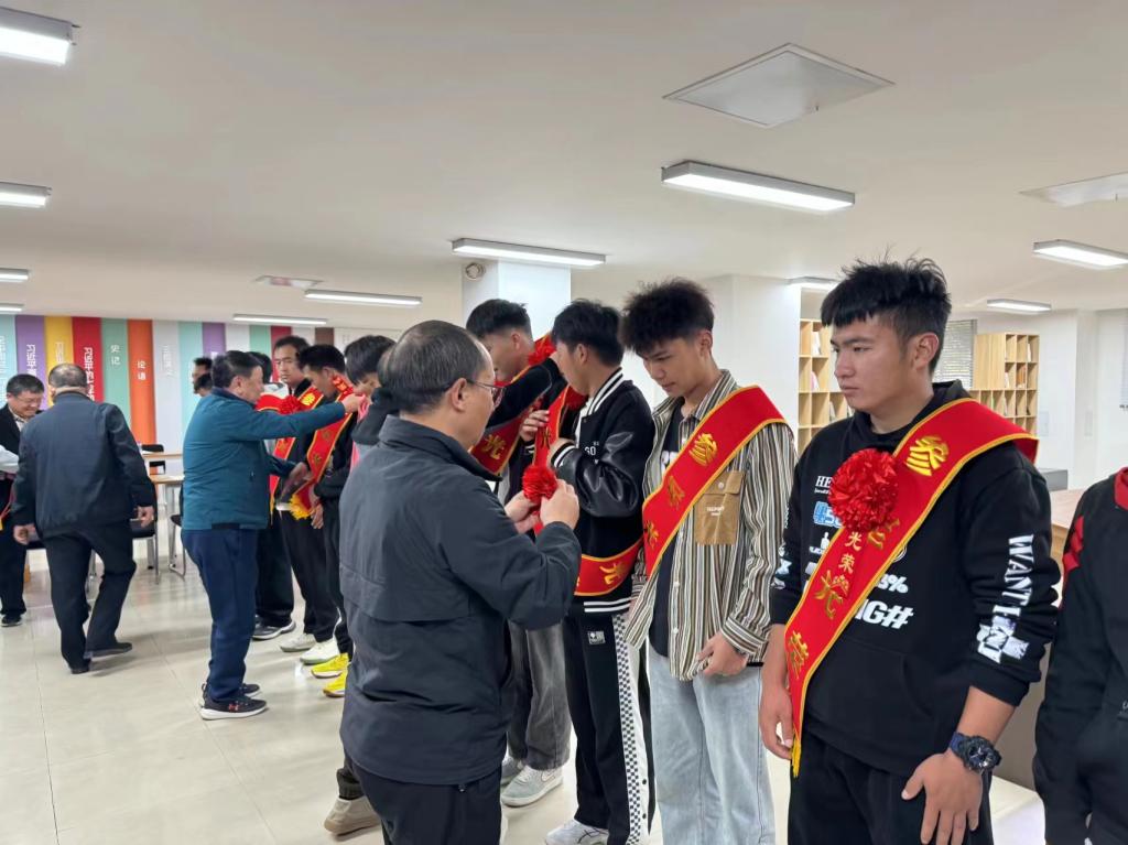 参会学院领导、老师们为预定兵佩戴光荣入伍绶带、红花。入伍新兵代表毛真荣同学做了发言,代表入伍同学感谢学校的培养和关怀,表示将努力学习、刻苦训练、服从指挥,追梦军旅、不负青春,为校增光添彩。