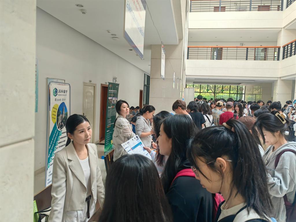 为此次推介会邀请到来自北京、上海、昆明、西安、福州等地的18家知名中介机构以及国外高校参加,现场为学生提供专业的留学咨询和指导,帮助有意向的同学优化留学规划,同时通过校园网站、海报等多种渠道对推介会进行广泛宣传。各二级学院遴选有条件的学生参加,学生和留学机构、海外高校在现场进行了充分的互动交流。