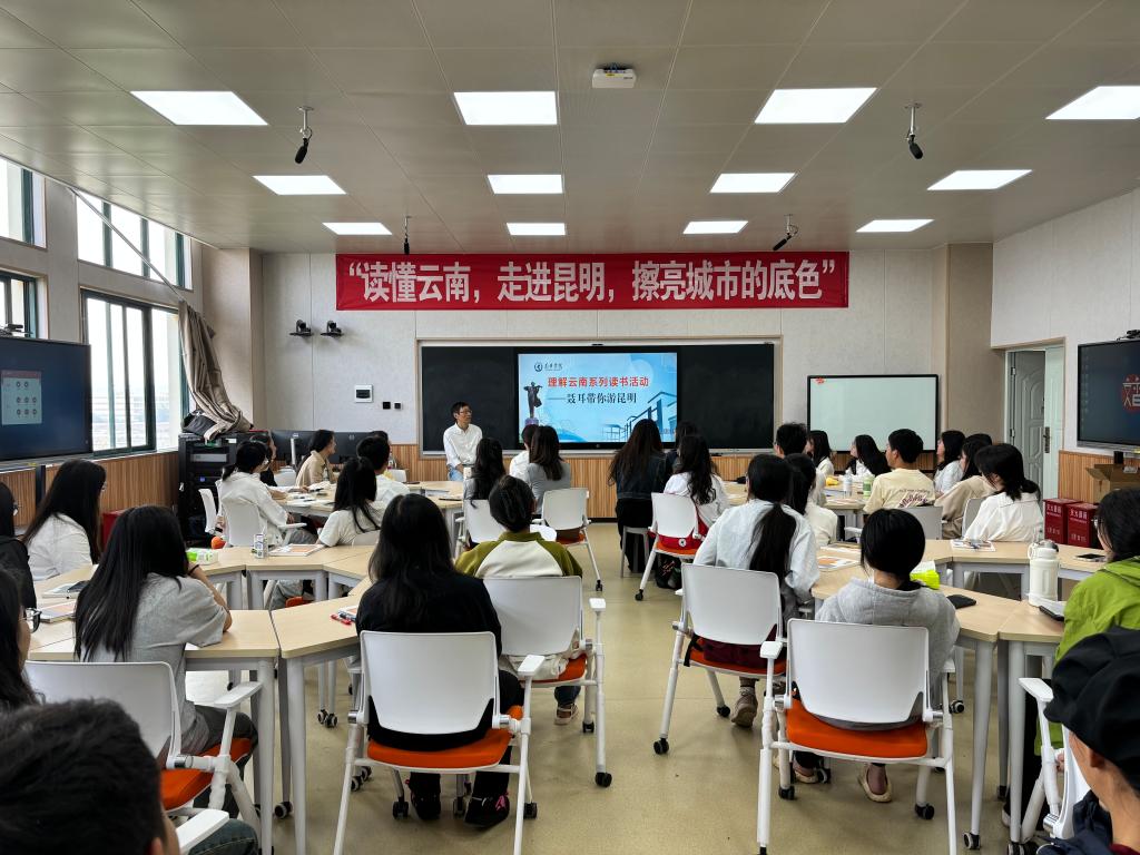 4月23日,为响应第三届全国阅读大会号召,马克思主义学院组织开展了“理解云南”系列读书活动,同学们积极参与。学院院长陈嘉教授受邀作为主讲嘉宾,就昆明城市发展的人文地理做了经典解读,以聂耳母校——云南省立第一师范学校(现yl23411永利集团官网)为开端,介绍了云南几所重点高校的历史由来和与之伴随的城市建设,号召同学们要多读书,读好书,像聂耳一样走出学堂,扎根边疆,用心建设家乡。