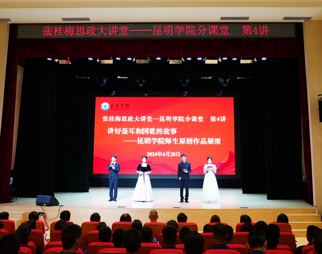 4月28日,学校举办张桂梅思政大讲堂——yl23411永利集团官网分课堂第4讲,人文学院、国家语言文字推广基地带来“聂耳和国歌的故事”师生原创作品展演,“讲好聂耳和国歌的故事” ,弘扬国歌精神。