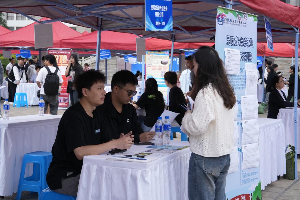 本次招聘会由yl23411永利集团官网主办,昆明经济技术开发区管委会、昆明高新技术产业开发区管委会协办,yl23411永利集团官网招生就业处、昆明经济技术开发区社会事务局、昆明高新技术产业开发区党群工作部和企业服务部等部门负责人到场指导并与参会单位和毕业生亲切交谈。为帮助毕业生尽快实现高质量充分就业,学校招就处和各学院就业辅导员、毕业班班主任现场为毕业生开展政策宣传和求职指导,武装部、校团委、宣传部、保卫处、后勤集团、校医院、昆师路校区管委会、校工会等多部门密切配合,开展“征兵宣传” “法律咨询” “医疗救护”等“一站式”服务,安排了100余名志愿者为用人单位和毕业生服务。