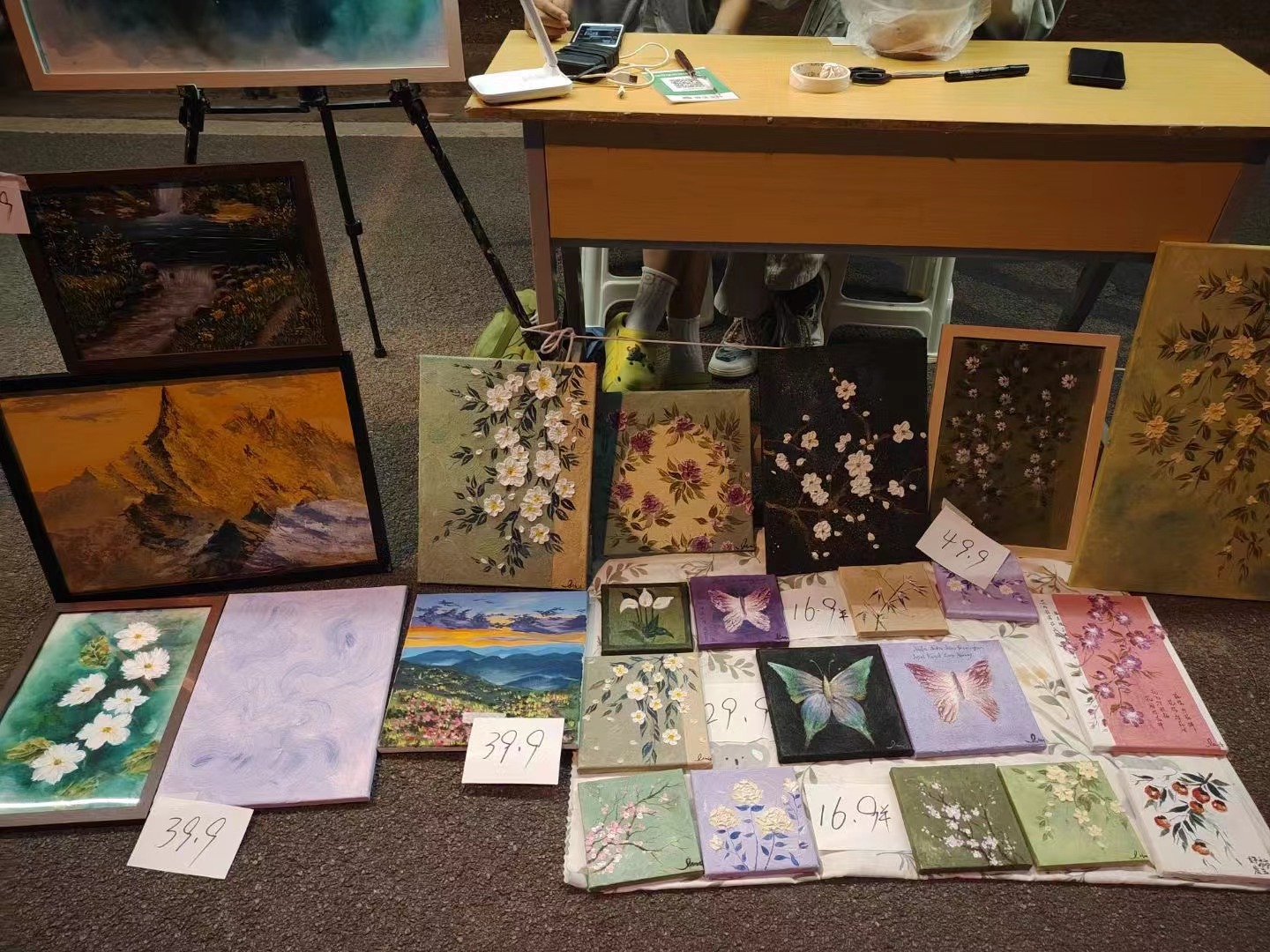 集市吸引众多学生参加,共设置了55个学生摊位。在“赠人玫瑰 手有余香”旧货交易区,各学院毕业生在摊位出售或赠送包括学习资料、电子产品、生活用品、体育用品等物品,让带不走的青春回忆继续在校园里温暖延续。“专属定制 非遗体验”手工制作区开展了非遗漆扇、传拓等手工DIY活动,一把把鲜艳的漆扇、一幅幅精美的拓印画,在集市上形成一道道亮丽的风景。“魅力五月 青春飞扬”表演互动区,相关社团和乐队带来了吉他演奏、街舞、歌唱等精彩的节目表演,现场观众用手机亮起闪光灯,打造出一片璀璨的灯海,洋溢着欢乐青春的氛围。各个摊位风格不一,售卖的物品琳琅满目,引得路过的师生驻足观看。