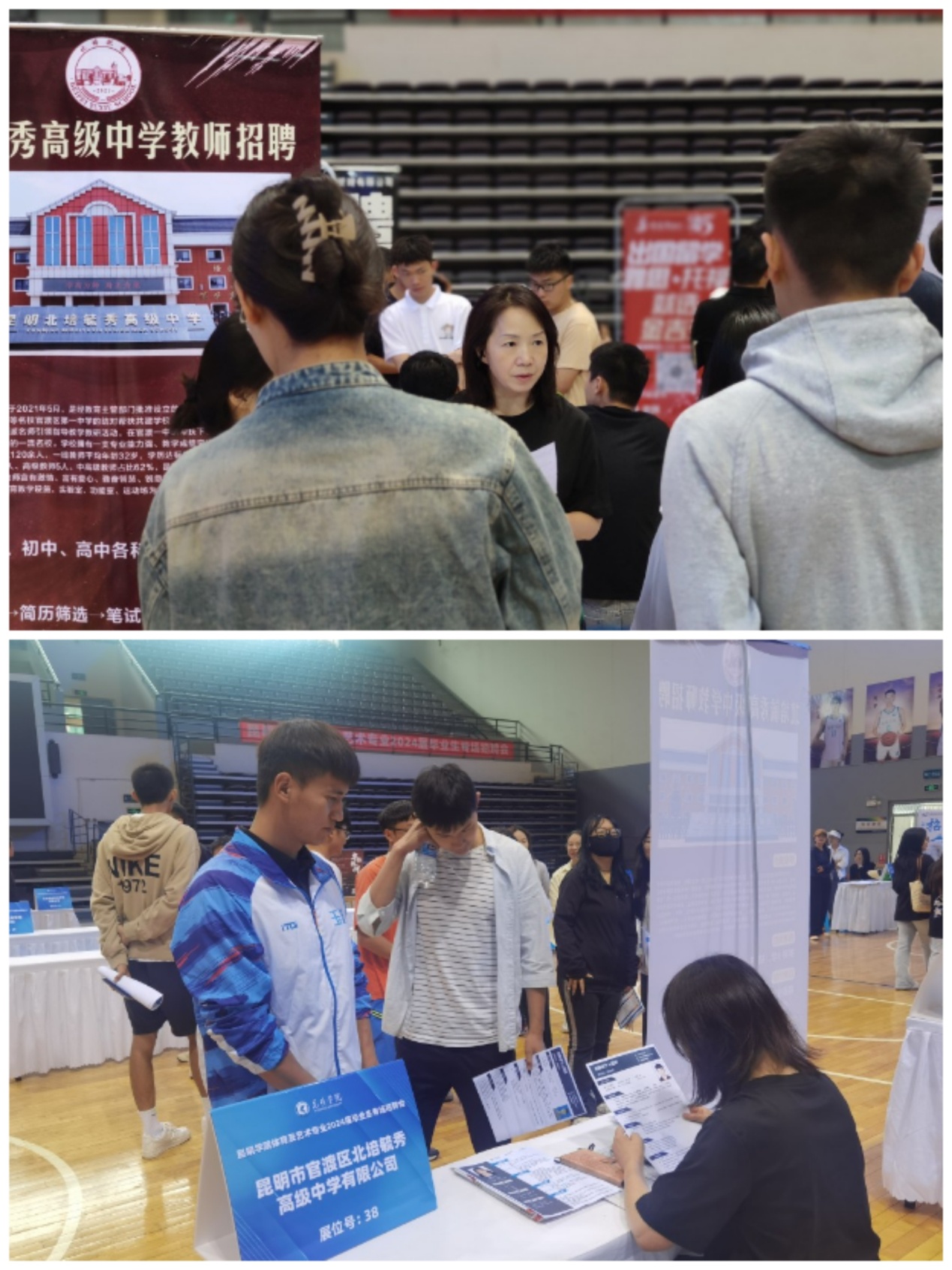 本次招聘会由招生就业处指导,体育学院、音乐舞蹈学院、美术与艺术设计学院共同承办,邀请了博远文体发展(曲靖)有限公司、昆明市官渡区北培毓秀高级中学有限公司、昆明经开区荷马艺术培训学校有限公司等60余家企业参会,提供就业岗位150多个,招聘需求人数400余人。招聘会当天招生就业处、各学院负责人、就业辅导员、班主任等为到现场参加招聘的2024届毕业生进行指导和答疑解惑。