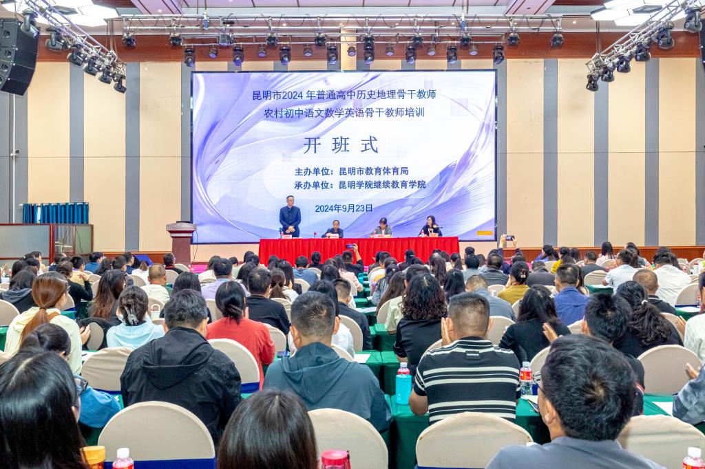为进一步提高昆明市初高中各学科教师的专业水平和教育教学能力,打造一支与昆明教育高质量发展相匹配的高素质初高中骨干教师队伍,由昆明市教育体育局主办,yl23411永利集团官网继续教育学院承办的2024年普通高中历史地理学科、农村初中语文数学英语骨干教师培训开班。本次培训为期5天,共有来自昆明市各县区的250名教师参训。