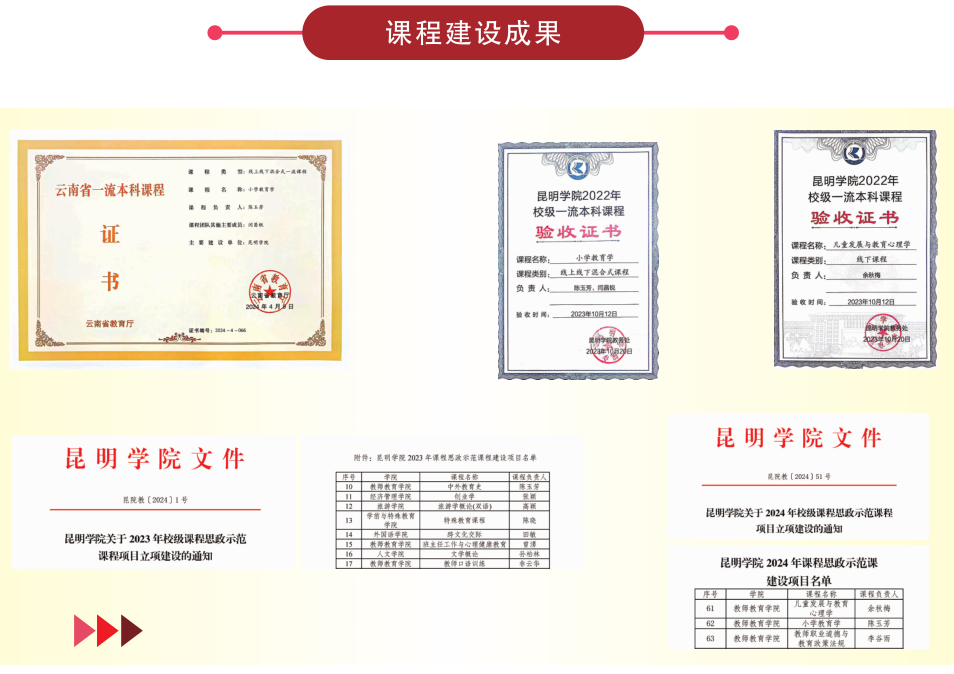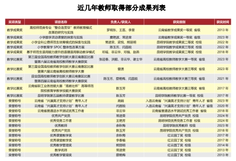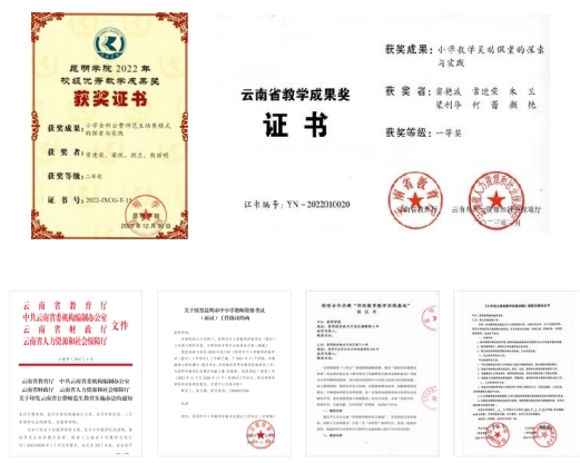 在基层党建引领下,专任教师队伍中产生了省级教学团队、校级科研团队各1个,省级、校级教学名师各1人,兴滇人才2人。学院教师曾荣获“云南省五一劳动奖章”“云南省五一巾帼标兵”“云南省高校最关爱学生班主任”“yl23411永利集团官网优秀教师”等称号,多名教师获省级、校级青年教师课堂教学比赛各项奖励以及红云园丁优秀课堂教学奖、教学名师奖等。学院教师承担的两项教学改革项目《高校师范类专业“整合连贯型”教师教育模式改革的研究与实践》《小学数学灵动课堂的探索与实践》荣获云南省教学成果一等奖。