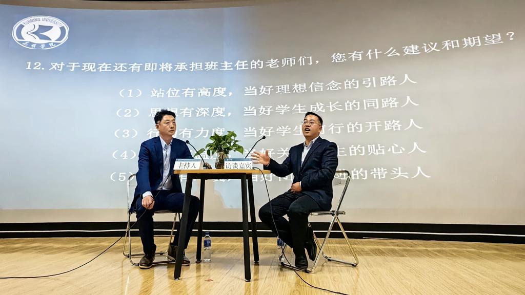 访谈过程中,刘兴全就学生工作认知、工作思路和具体方法、学生工作重难点、日常思政教育方法、心理健康教育、学风建设、服务学生等多个方面与主持人进行了交流分享,对永利官网辅导员和班主任们提出了工作意见和建议。参训老师就辅导员、班主任工作定位、具体工作案例等内容与刘兴全老师进行了热烈讨论。
