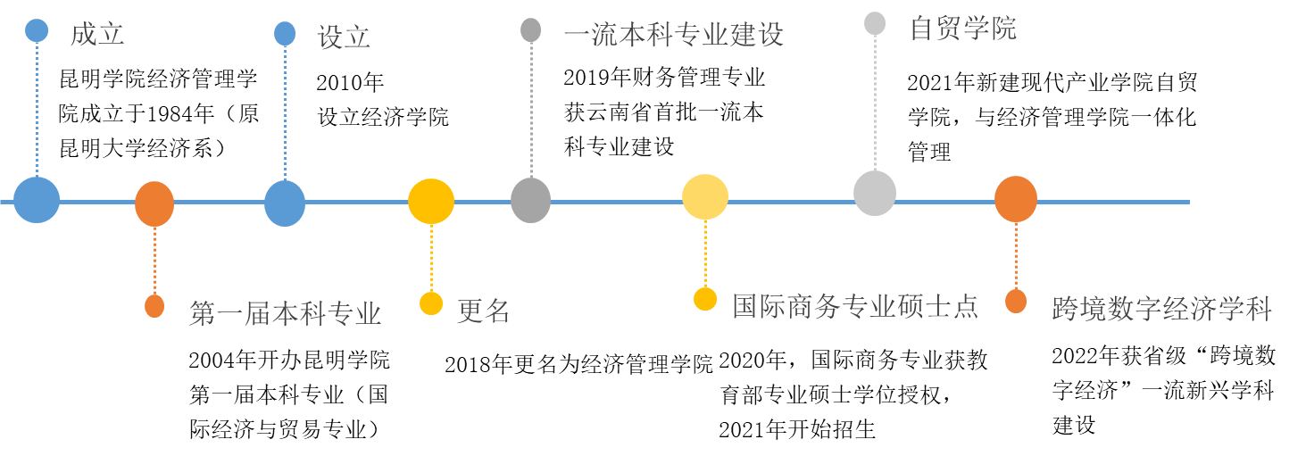 yl23411永利集团官网经济管理学院成立于1984年(原昆明大学经济系),2004年开办yl23411永利集团官网第一届本科专业国际经济与贸易专业。2010年设立经济学院;2018年更名为经济管理学院。2021年新建现代产业学院——自贸学院,并与经济管理学院一体化管理。2022年获省级“跨境数字经济”一流新兴学科建设,2024年获批云南省哲学社会科学“面向南亚东南亚跨境数字经济”创新团队。学院秉承“克己精进、笃行经世”的院训,以高素质人才培养为中心,以建设“优质应用型商科品牌学院”为目标,注重规模、结构、质量和效益的统一,走“科教兴院、人才立院、管理强院”之路,以培养“立足昆明、服务云南、辐射南亚东南亚”的应用型人才为己任。