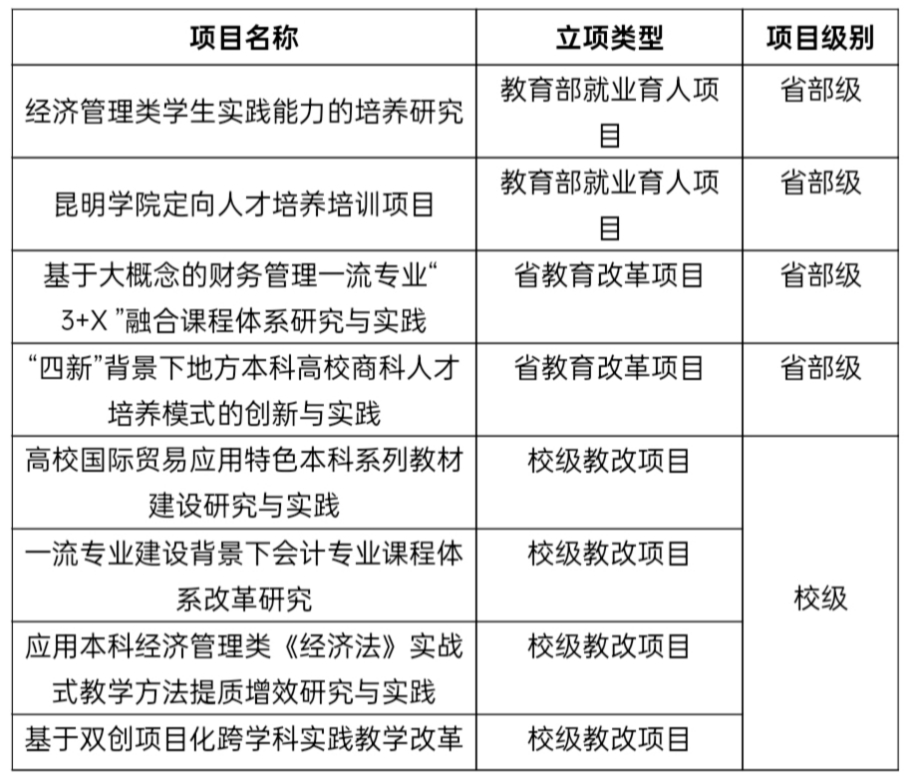 学院现有国际经济与贸易、财务管理、工商管理、会计学四个本科专业。2019年财务管理专业被列为云南省首批一流本科建设专业,国际经济与贸易专业被列为云南省本科教学特色专业以及云南省专业群改革建设试点专业。自2019年起承担yl23411永利集团官网创新人才(理科)基地班的人才培养工作,2020年,以四个本科专业为基础申请获批国际商务专业硕士学位点,并于2021年开始招生。2022年在国际经济与贸易专业分设自贸学院本科教学班——自贸班。截至2024年5月学院共有在校生1432人,其中研究生64人,留学生70余名,形成了“本-硕”和留学生教育多层次的人才培养体系。