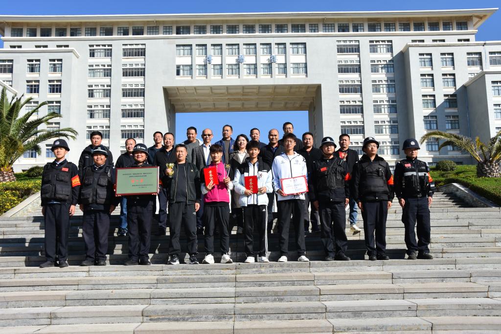 11月13日下午,昆明经济技术开发区119消防宣传月启动仪式在富康城中心广场举行,此次活动的主题是“全民消防、生命至上”。活动设置了消防设备展示、消防安全警示教育展等多种消防游戏活动,表彰了“练就过硬本领 保障社区安全”比武竞赛获奖的单位和个人。学校保卫处相关负责人代表学校领取了奖牌和奖状。