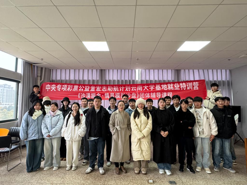 12月15日,为了进一步提升永利官网就业指导教育的水平和质量,增强学生就业竞争力,由全国高校毕业生就业能力培训基地(云南大学)主办的“中央专项彩票公益金宏志助航计划就业特训营”——《“职场人生”沉浸式角色体验工作坊》团体辅导课程在永利官网顺利举行。