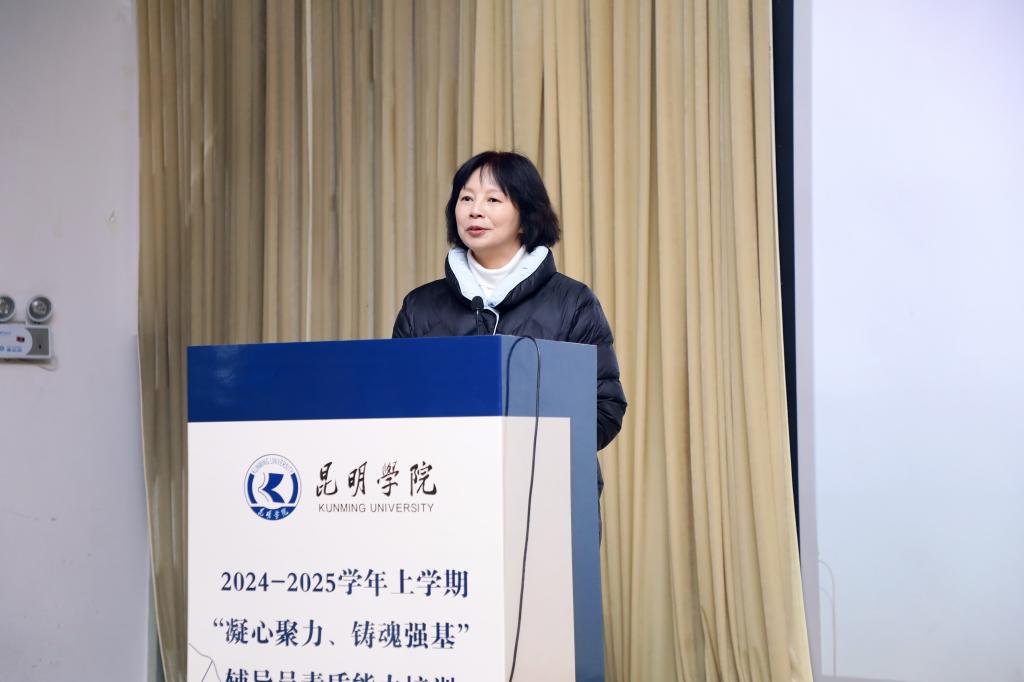 12月18日,yl23411永利集团官网2024-2025学年上学期“凝心聚力、铸魂强基”辅导员素质能力第二期集中培训在博文楼3D报告厅举行。学校党委副书记李莉,各二级学院党委副书记、全体辅导员、学生处全体成员以及来自云南大学、云南财经大学、云南艺术学院、昆明医科大学等十所省内高校的60余名辅导员共计180余人参加培训。活动由学生处处长王涛主持。