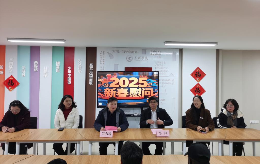 日月其迈,时盛岁新,在2025年新春佳节来临之际,yl23411永利集团官网开展了2025年关爱春节留校学生慰问活动。1月22日上午,学校党委委员、副校长彭志远、李剀带领学生处、保卫处及医学院、数学学院、国际学院等二级学院相关领导、老师与假期留校的本科生、研究生、留学生在yl23411永利集团官网“一站式”学生社区党建文化悦读空间开展了慰问座谈,代表学校向全体留校学生致以节日问候和良好祝愿,并送上新春福袋。恭祝大家新春快乐,万事顺意,阖家幸福。