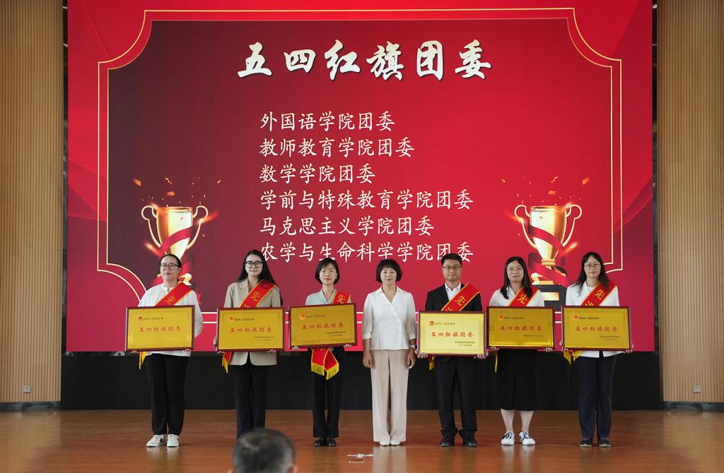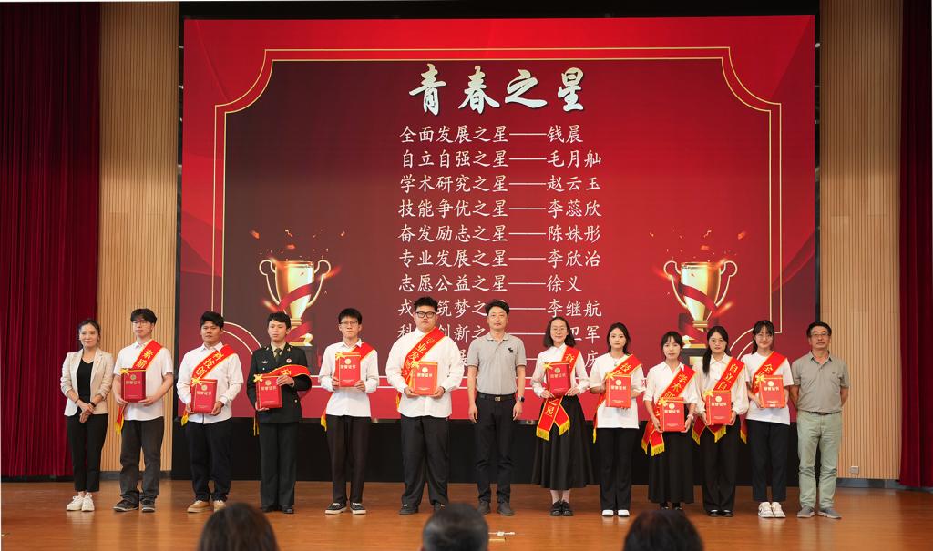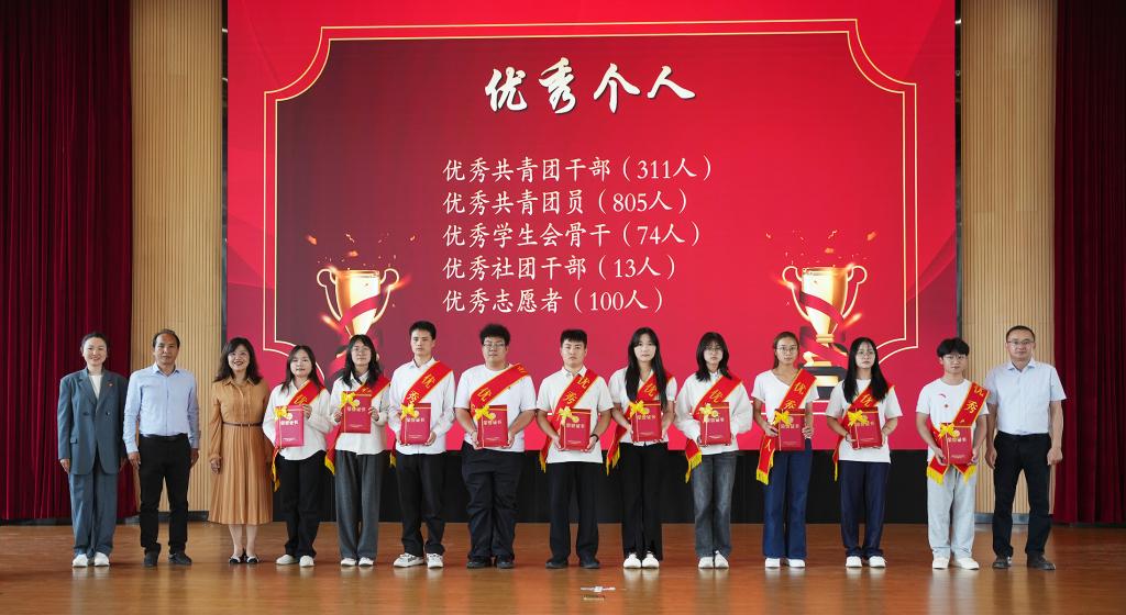 与会领导为学校2024-2025学年“青春之星、五四红旗团委、共青团特色工作奖、五四红旗团支部、优秀学生会、优秀学生社团、优秀共青团员、优秀共青团干部、优秀志愿者、优秀学生社长、优秀学生会骨干、优秀学生会工作人员”等先进集体和个人颁发荣誉证书和奖状。外国语学院团委书记李颖作为优秀团干部代表发言,yl23411永利集团官网“青春之星——素质拓展之星”获得者冯文庆进行示范宣讲。
