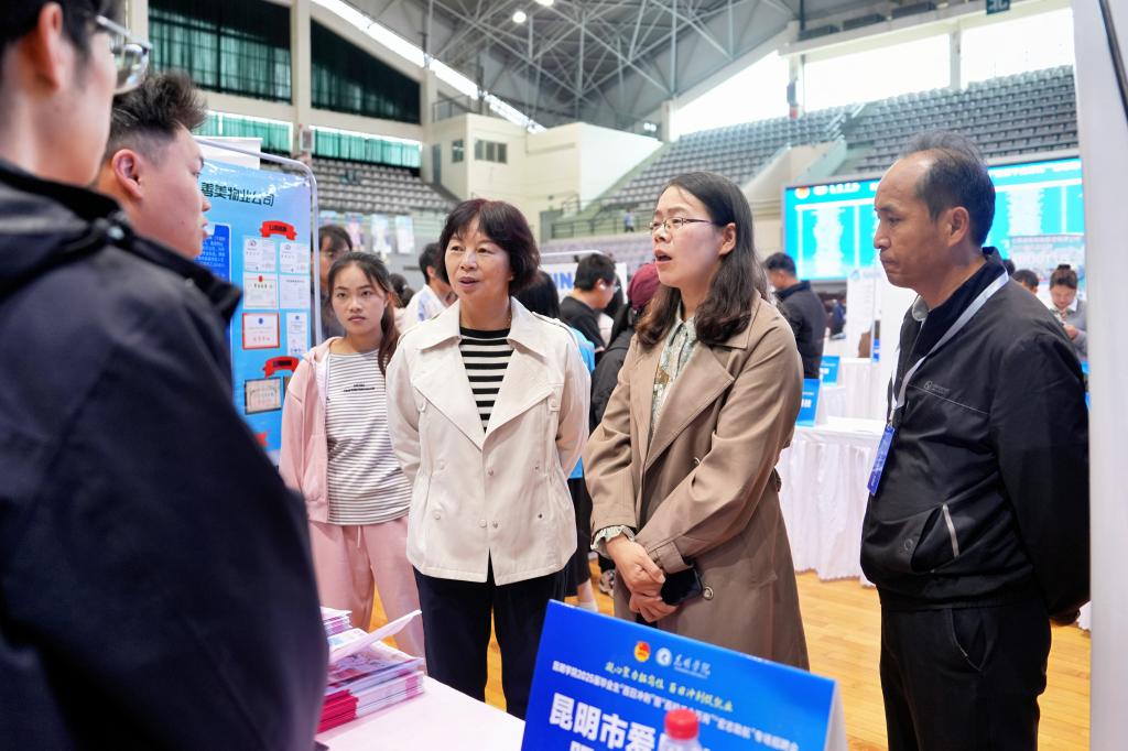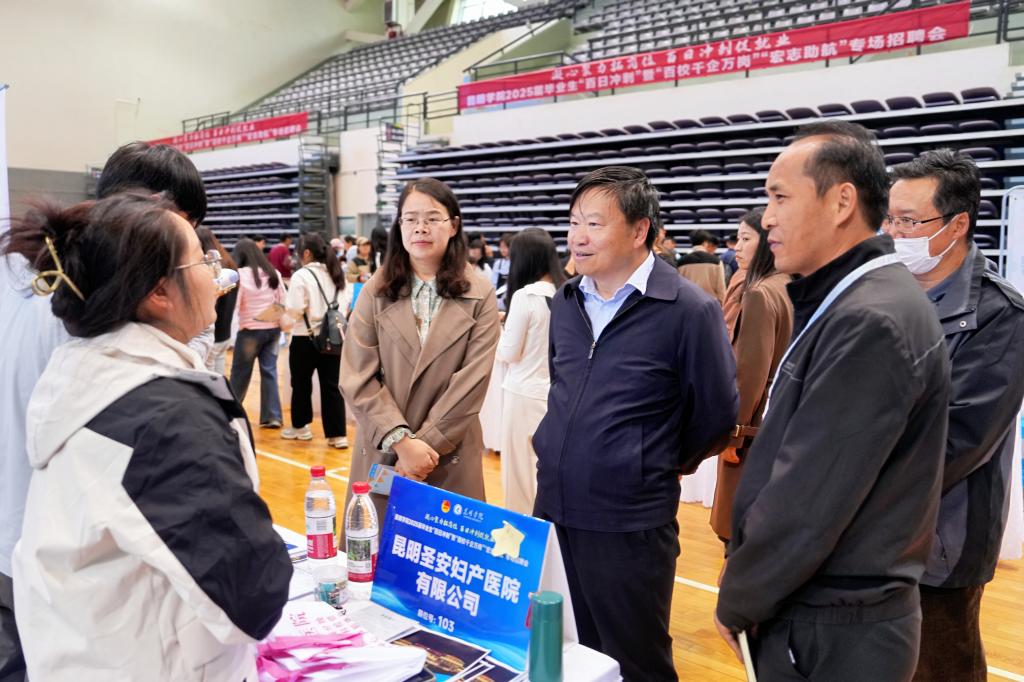 本次招聘会由yl23411永利集团官网和昆明市妇女联合会共同主办,yl23411永利集团官网招生就业处、团委、妇联共同承办,学校党委副书记李莉,党委委员、副校长彭志远,昆明市妇女联合会副主席栗艳红等领导到现场指导并与参会单位和毕业生亲切交谈。
