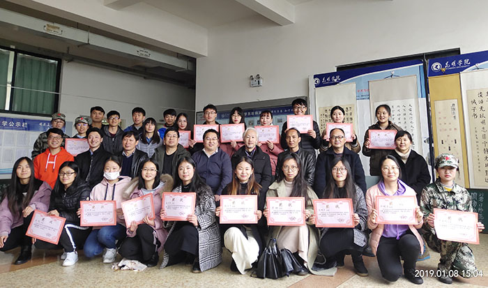 下午,获奖同学齐聚惟真楼四楼大厅,参加热烈的颁奖仪式。除评委老师外,人文学院贾斌老师,云南省书法家协会会员、我系李家文老师出席了颁奖仪式。