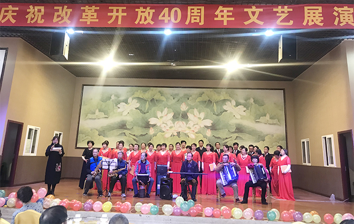 12月14日,yl23411永利集团官网离退休职工“庆祝改革开放四十周年文艺汇演”在晨农生态庄园举行。一百六十余名离退休职工欢聚一堂,载歌载舞,共享精彩的文化盛宴。离退休工作处处长杨斌同志亲临演出现场并致辞。 演出在大合唱《我爱你,中国》歌声中拉开帷幕,演员们身着红色服饰,用深情的歌声表达了对祖国的浓浓爱意;歌曲《共和国之恋》、《我们是快乐的好朋友》一首首耳熟能详的歌曲讴歌了改革开放的伟大成就,赢得现场观众的热烈掌声。《卓玛》、《看山看水看祖国》、《我的祖国我的梦》等舞蹈舞出了人们对美好新时代的赞颂,表达出对祖国繁荣发展、人民生活幸福的美好祝愿;花灯小唱表演的演员唱腔韵味正统,演技精湛,将老昆明人物形象刻画的栩栩如生;离退休工作处王耀勇老师自己编曲、全体工作人员表演的小合唱《社会主义核心价值观》更是将演出推向高潮。本次演出节目形式丰富多彩,有舞蹈、合唱、器乐合奏、柔力球表演等,节目呈现出一个个精彩的场面,让观众们获得难得的视听享受,时不时引来阵阵掌声。 离退休工作处一直以来十分重视离退休职工文化建设。为了在这次文艺汇演中充分展现离退休职工的才艺水平和精神面貌,离退休工作处全体人员做了充分准备,台前幕后分工协作,选节目、预定车辆、安全等,每一项步骤都有条不紊地进行。临近演出,为了呈现最好的节目效果,大家加班加点精益求精地做好每一个环节。正是离退休工作处这种全力以赴的精神和演员们的认真排练,才最终给观众带来精彩的演出效果。