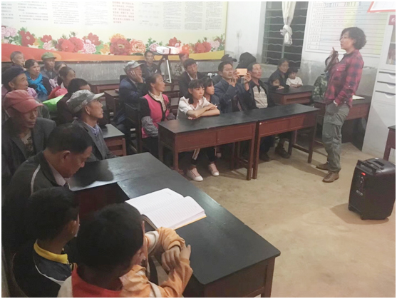当晚,项目组在关中村党员活动室为30余位村民进行了“教育部西南地区旅游和健康教育扶贫”——yl23411永利集团官网东川区阿旺镇关中村系列讲座,分别从旅游资源开发与利用、旅游接待软硬件条件、旅游要素普及、转变观念求发展、如何理财等方面进行了三个多小时的精彩讲座,启发了村民的思路,刺激了村民参与旅游开发项目的愿望,得到了村民们的高度评价。