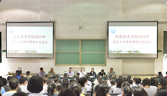 又是一年迎新季,信息技术学院2018年迎来了300多名新生,为帮助他们快速适应大学生活,了解学院的基本情况。9月1日,信息技术学院2018级新生入学教育暨师生见面会在博雅楼3101隆重举行。学院党总支书记陶军、副院长何俊出席见面会,全体辅导员、18级新生班主任、18级全体新生参加活动。党总支副书记李凯佳主持会议。