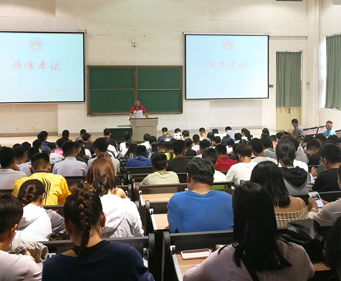 叶燎昆副书记强调诚信考试的重要意义,希望体育学院全体学生党员起好模范带头作用,以佩戴党员徽章方式参加考试。面对即将到来的暑假安全工作,叶副书记以学校保卫处刚下发的“暑期安全提醒”为主线,对防溺水、交通安全、提防打工陷阱、美容贷等十个问题逐一进行了宣传教育,提出了更加严格的要求。