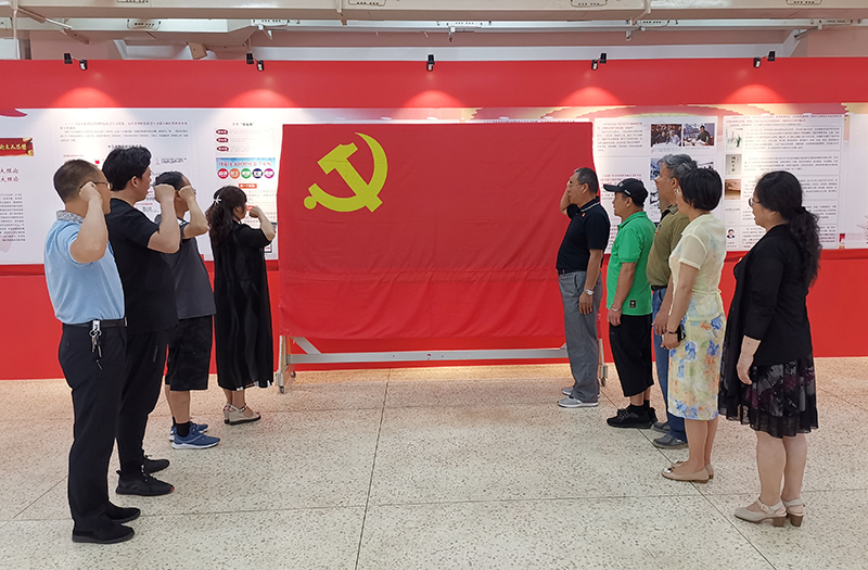 在yl23411永利集团官网图书馆“习近平新时代中国特色社会主义思想学习园地”,全体党员参观了“真理之光照未来”主题展览。参观学习过程中,党员们在图书馆李静老师带领下,了解了习近平新时代中国特色社会主义思想理论渊源,创立发展、主要内容和历史地位。随后,面对鲜红的党旗全体党员重温了入党誓词。
