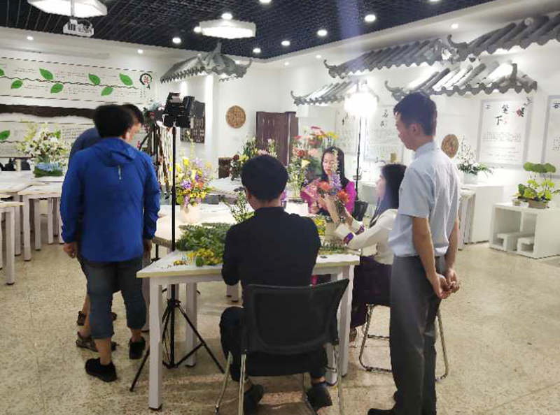 7月6日上午,昆明广播电视台全媒体新闻中心形象片工作部到永利官网中心滇池流域花文化展示与体验分馆取景拍摄春城花都宣传片—夏花。