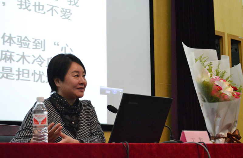 王荔教授就马加爵事件、药家鑫案、复旦大学投毒案、通江籍大学生自杀案、北大学子弑母案为同学们分析了出现极端的心理行为的原因及表现。并现场对大学生极端心理的预防进行细心指导。她强调,想要拥有健康的心理状态,首先要有意识的培育自尊自信、理性和平、积极向上的社会心态。第二,了解自己的人格特征,发挥自身优势。第三,要改变认知模式,用合理理念对心理压力进行自我化解。告诉同学们出现心理问题应及时寻求专业的心理救助,借助心理咨询老师的专业帮助,从根源上解决问题。