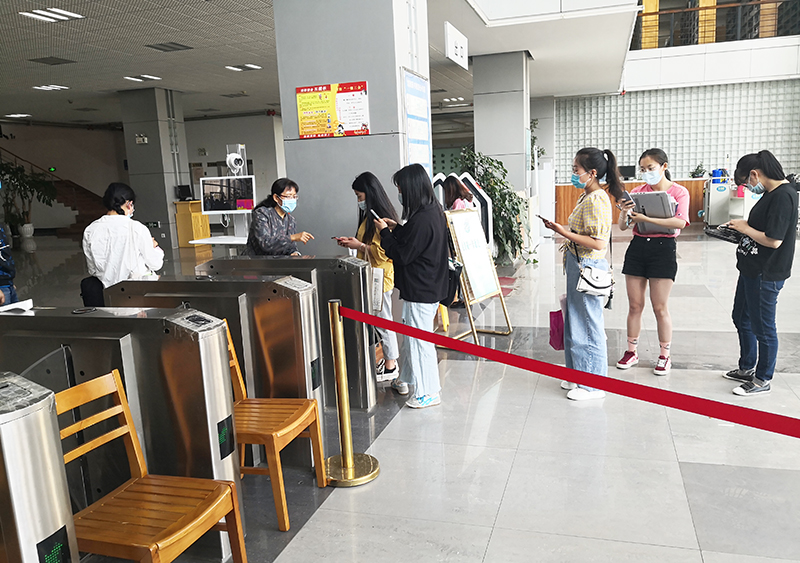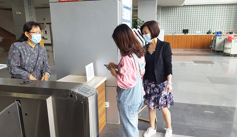 5月15日上午,图书馆洋浦馆迎来了开馆第一天的首批读者,在工作人员的引导下,扫码、签到、测量体温后,有序走进图书馆。