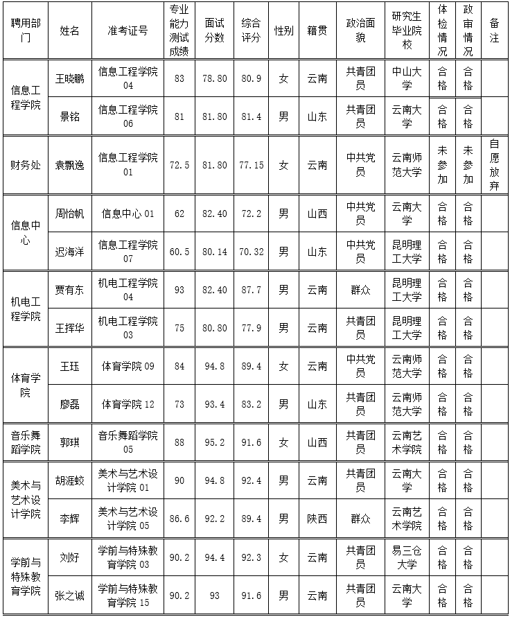 yl23411永利集团官网2021年公开招聘准聘制工作人员拟聘用人员名单