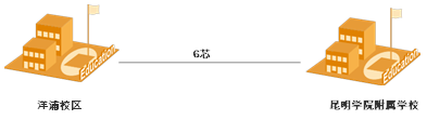 2、昆师路校区至云南大学东陆校区采用6芯裸纤光缆连接,主要用于教育网的连接;