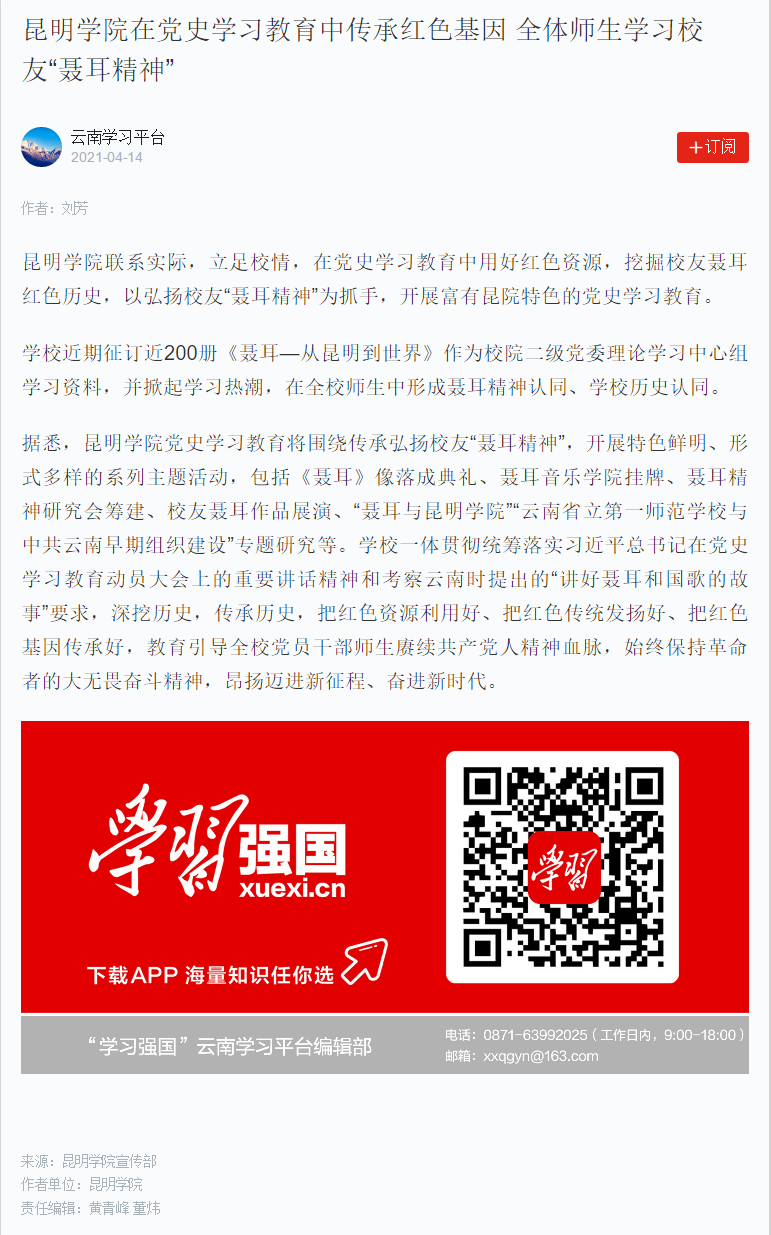 yl23411永利集团官网在党史学习教育中传承红色基因 全体师生学习校友“聂耳精神”
