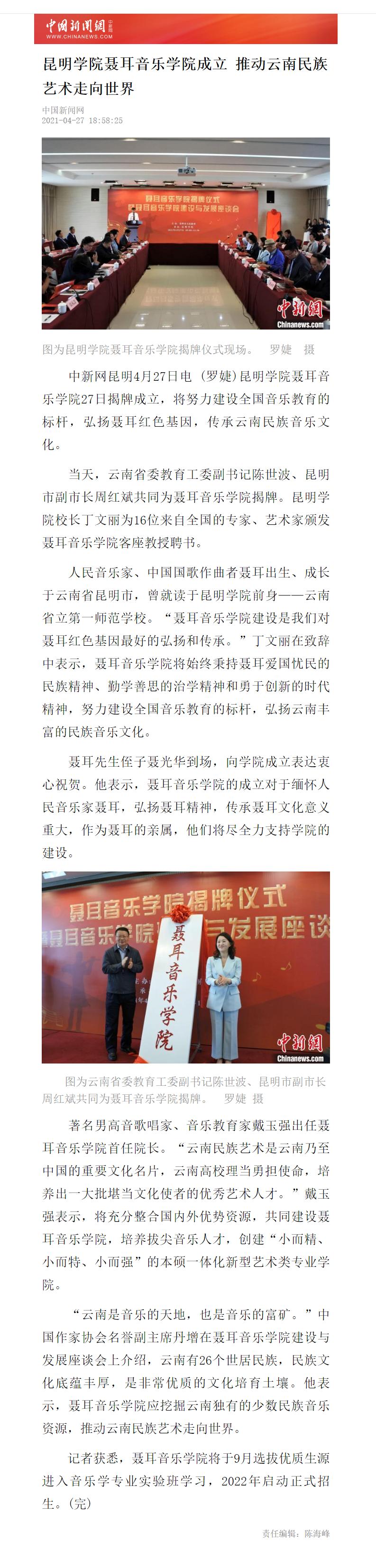 yl23411永利集团官网聂耳音乐学院成立 推动云南民族艺术走向世界