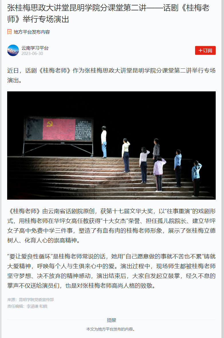 张桂梅思政大讲堂yl23411永利集团官网分课堂第二讲-话剧《桂梅老师举行专场演出》
