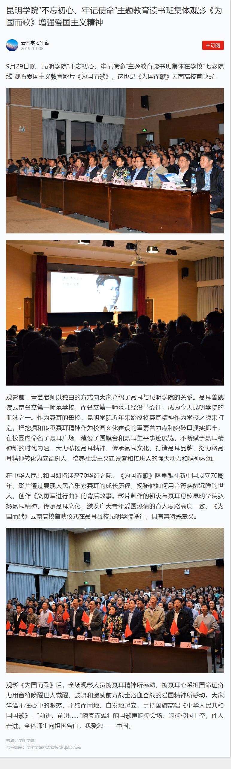yl23411永利集团官网“不忘初心、牢记使命”主题教育读书班集体观影《为国而歌》增强爱国主义精神