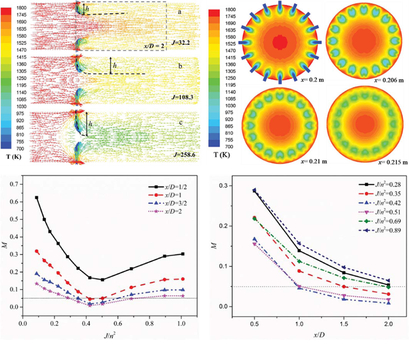 近几年,二氧化钛无机颜料(TiO2)因其广泛的应用而备受关注。其中TiCl4氯化法制备TiO2氧化过程受反应气体运输过程的控制,并进一步受到分子扩散和对流的影响。因此,TiCl4O2的混合行为研究对TiO2颗粒的工艺性能和质量起着至关重要的作用。针对这一问题,聂陟枫博士研究团队及其合作者在该项研究工作中采用数值模拟计算的方法,研究了氯化法制备TiO2过程中几何结构参数和流动参数对氧化反应器氧交叉流注入TiCl4射流流场和混合特性的影响,从而建立氧化反应器内的最佳气体混合条件和流体动力学。